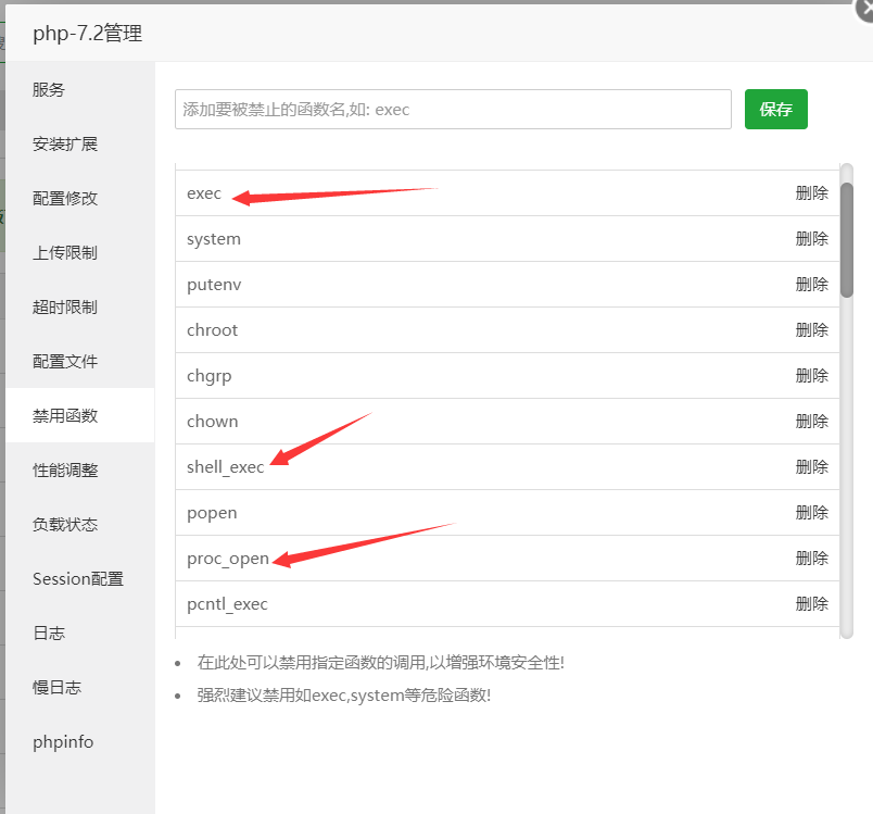 分别是 exec 、 shell_exec 、 proc_open 、proc_get_status 这四个函数。