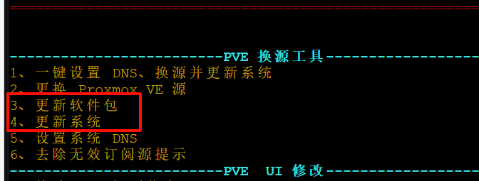 2、通过pve工具升级,在Shell中输入./pve\_source,然后使用脚本3、4来更新软件包和系统。