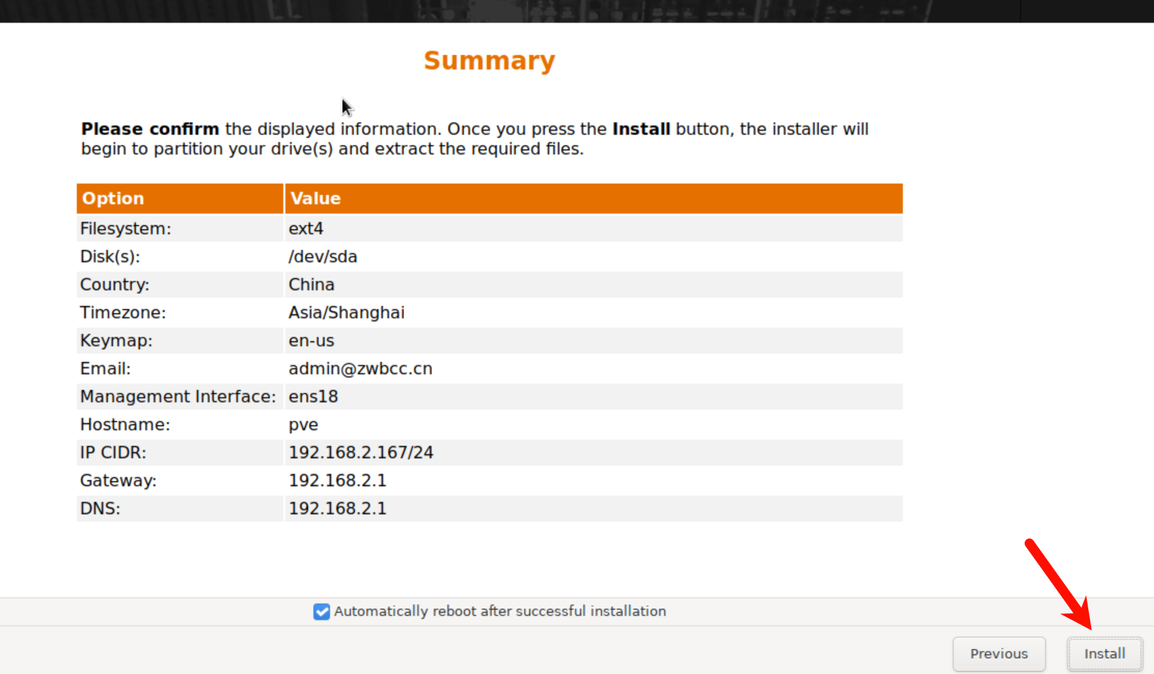 8、在配置详情中检查配置信息是否有误,没有问题点击Install(安装)。