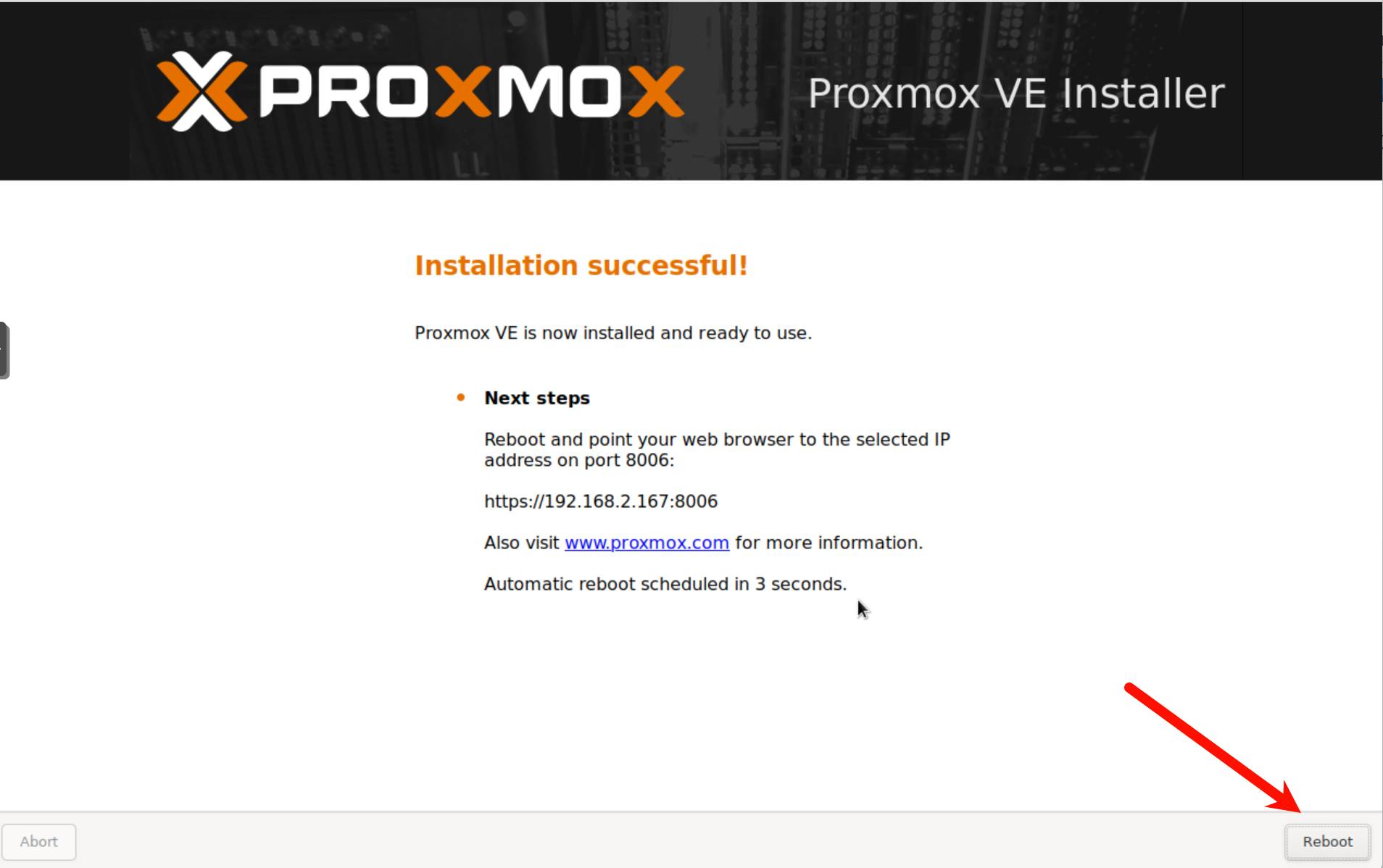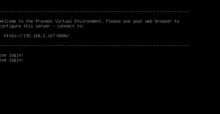 1、重启完成之后出现如下页面,表示安装成功,记录下屏幕中出现的ip地址,接下来的配置无需使用PVE主机显示,单个显示器的朋友可以将显示器切换到主机了。