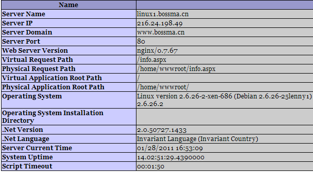 然后将其中的文件info.aspx拷贝到网站根目录,浏览: