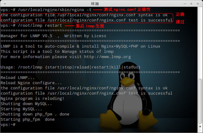 4、重启LNMP生效:/root/lnmp restart 。